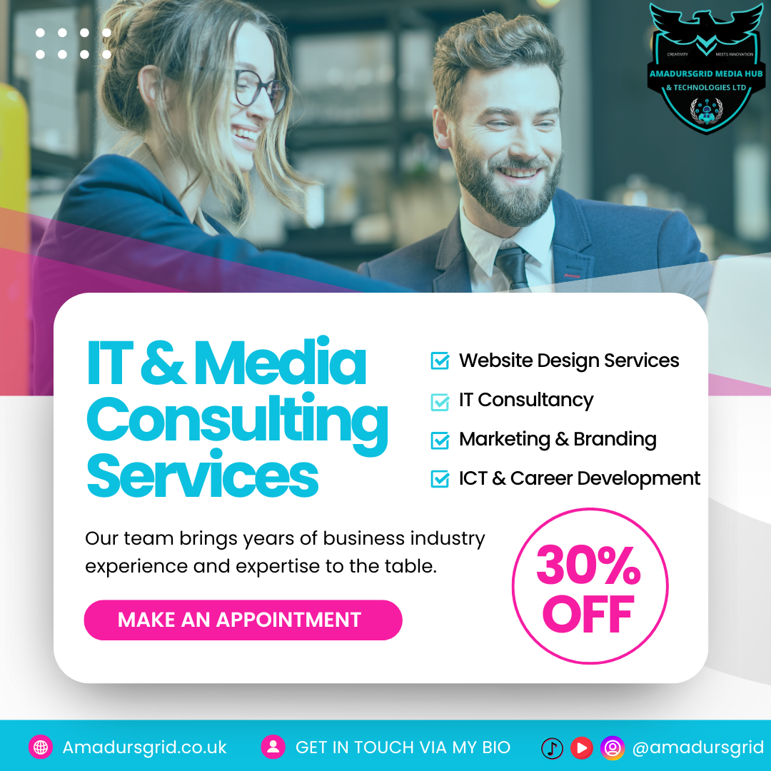 IT Consultancy | Website Design | Digital Marketing | Social Media Marketing | Content Creation | Vocational Training | ICT Training | Career Development | Marketing & Branding | UK’s First Affordable High-Quality IT Services.